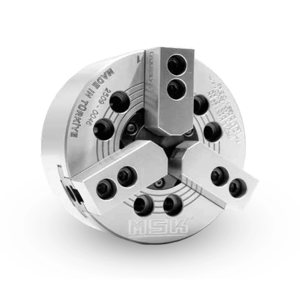 Ayna gövdesi, yüksek dayanımlı alaşımlı çelikten üretilmiş olup ısıl işlem uygulanmış yüzeyleri sayesinde aşınmaya karşı üst düzey direnç gösterir. Taşlanmış yüzey kalitesi, yüksek hassasiyetli ve tekrarlanabilir bağlama performansı sunar. Üç ayaklı çene düzeni, iş parçasını merkezde dengeli şekilde kavrayarak titreşimi azaltır ve işlem doğruluğunu artırır.